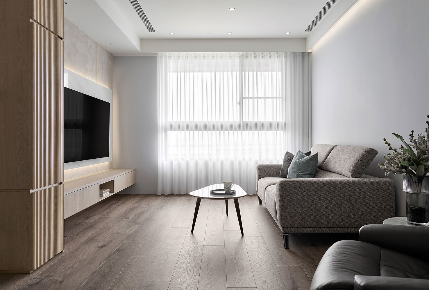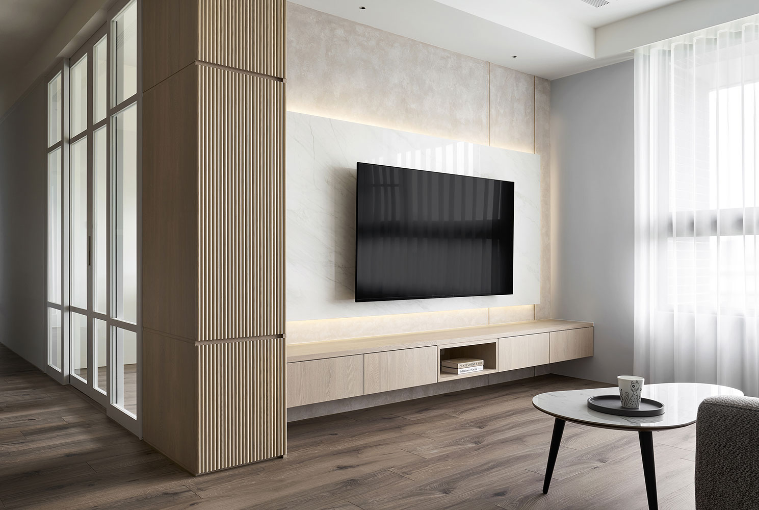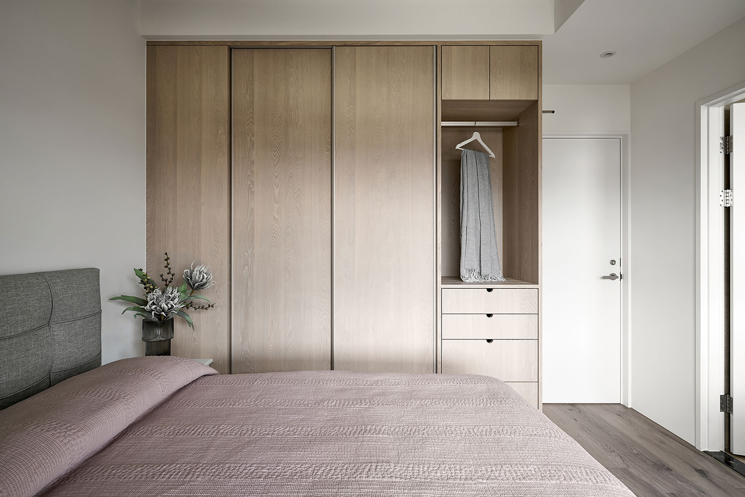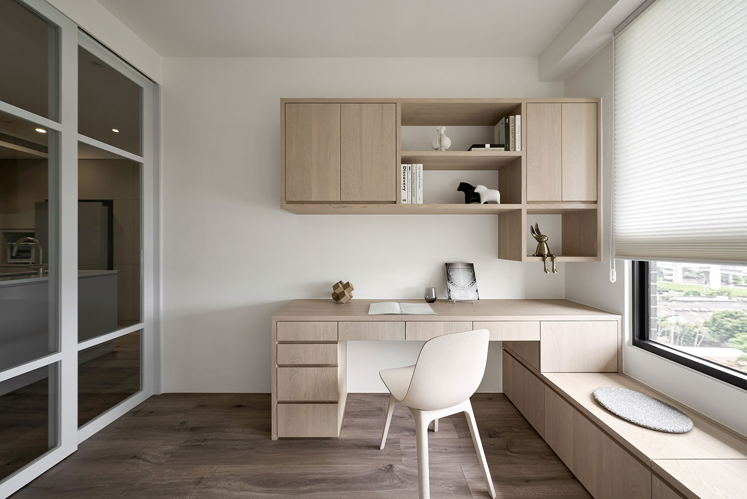 To consider homeowners in their 50s, we built barrier-free flooring and effortless sliding doors to enhance broad and safe living areas. Besides, we plan the kitchen and dining combo space in the center as the kitchen island contributes to making a smooth moving flow. The open layout perfectly accommodates the homeowners with cooking and interacting with families, which fabulously generates day-to-day happiness.