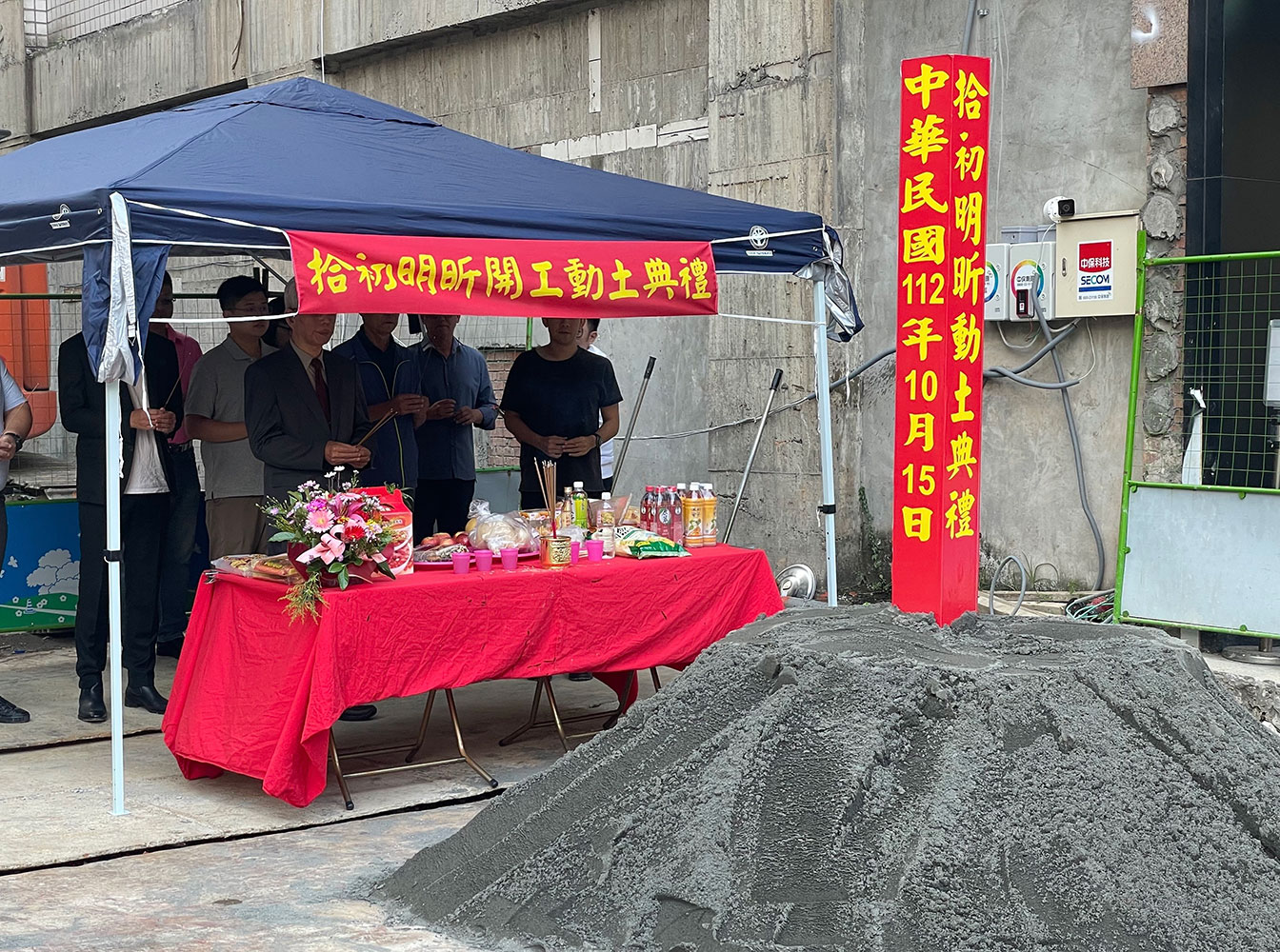 拾初建設有限公司「拾初明昕」新建工程於112年10月15日吉時興工動土,祈順利平安完滿美好建築。