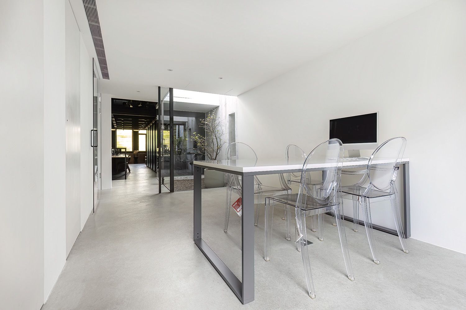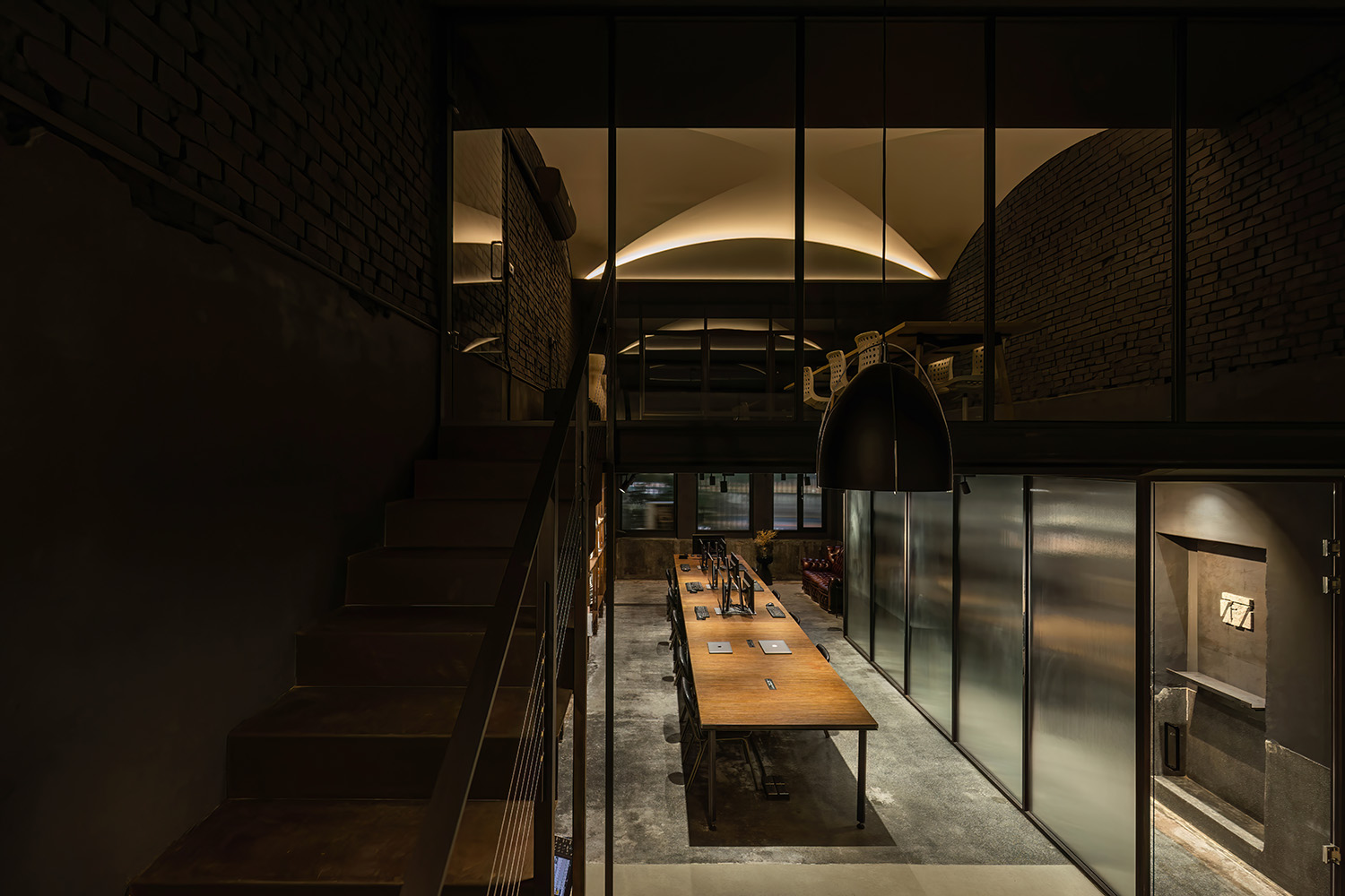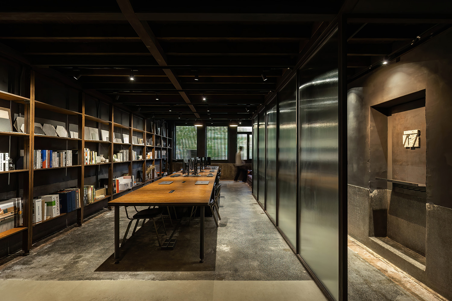 Over sixty years is etched into the wooden beams and columns, imbuing rich and rustic quality to the space. The soft glow of daylight trickles in from the courtyard, illuminating the unadorned Terrazzo floor and weathered brick walls. Each trace and mark seems to narrate a profound history, as if time has been gathered and preserved, emanating the enduring elegance of days gone by.